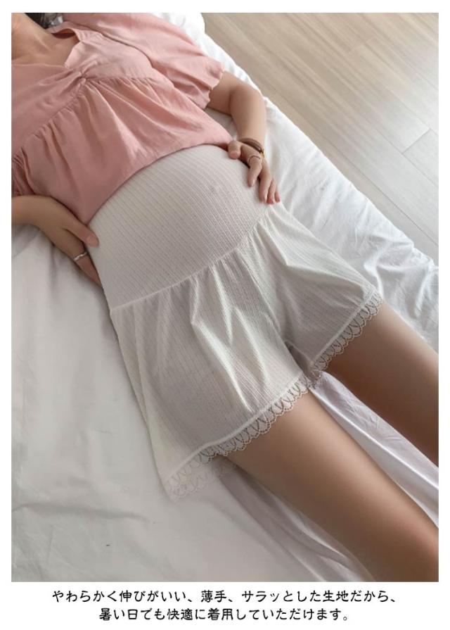 | 【2枚セット】 【裾のレース】おしゃれなレースデザイン! やわらかく伸びがいい、薄手、サラッとした生地だから、暑い日でも快適に着用していただけます。 裾は広がっているので、太もも部分の締め付けがなく、ゆったりとした着用感が妊婦さんにうれしい! 凄く可愛いのでインナーとしてだけでなく、1枚でルームウェアとしても履いていただけます。 | |