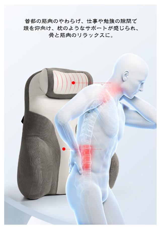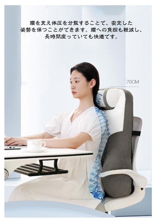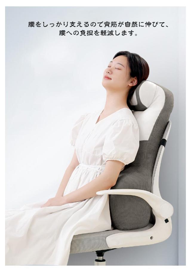 | 設置簡単!快適な座り心地を実現する背もたれクッション 大き目背もたれ効果、背もたれ低い椅子でも問題なく設置可能!普通のオフィスチェアも瞬間にハイバックチェアに変身。 腰をしっかり支えるので背筋が自然に伸びて、腰への負担を軽減します。 首部の筋肉のやわらげ、仕事や勉強の隙間で頭を仰向け、枕のようなサポートが感じられ、骨と筋肉のリラックスに。 日々のオフィスワークや長距離運転などが多い方、妊婦の方など快適に座りたい方にオススメです。仕事中、運転中など、さまざまな用途、場所でご使用いただけます。 腰を支え体圧を分散することで、安定した姿勢を保つことができます。腰への負担も軽減し、長時間座っていても快適です。 | |