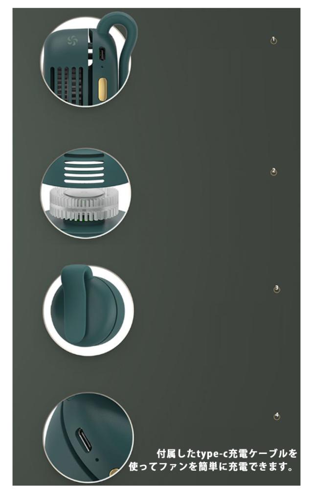 | サイズについての説明 | バッテリー:900mAh 素材:ABS シリコン 風量:三段階風量 電源ポット:type-c 羽根量:60枚 作動パワー:2.1W サイズ:74*65*50.7mm 充電時間:1.5時間 重さ:160g 付属品:クリップ扇風機*1 type-cケーブル*1 |