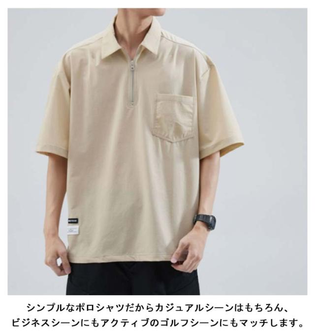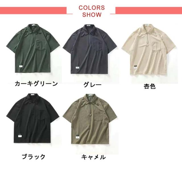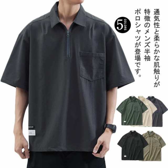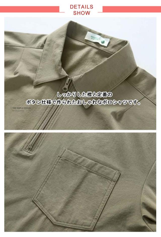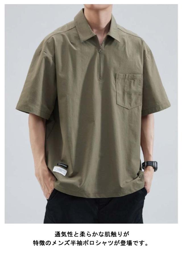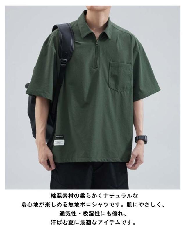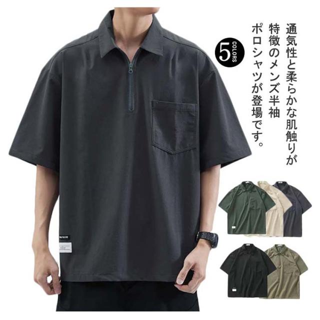 メンズ ポロシャツ 半袖 夏 Tシャツ 大きサイズ 体型カバー ジッパー付き ゆったり ポケット付き 前ハーフジッパー UVケア 紫外線対策 tシャツ クルーネック スポーツ 吸汗速乾 吸水速乾 薄手 ワーク カジュアルポロシャツ 無地