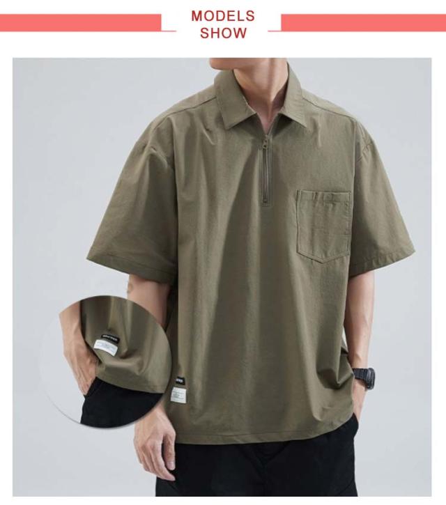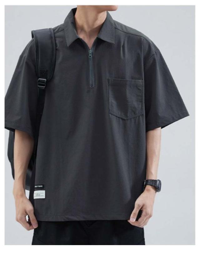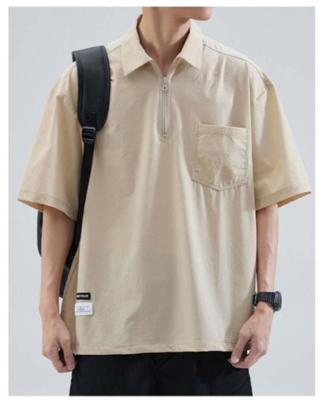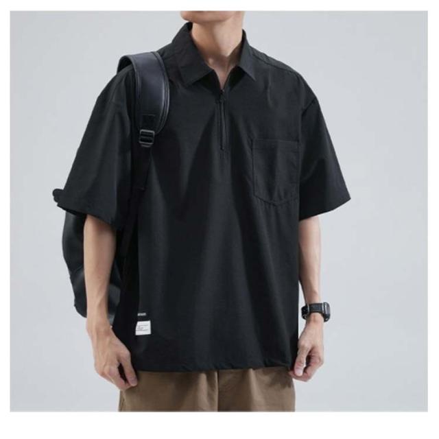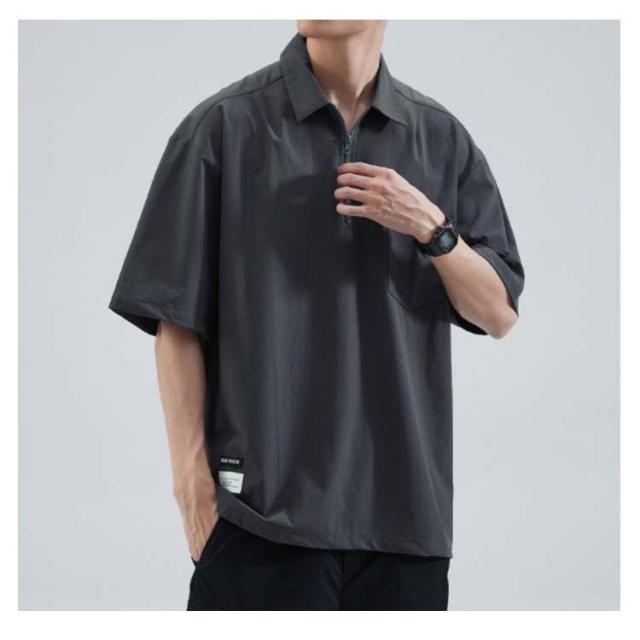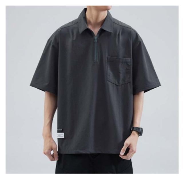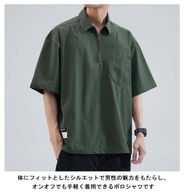メンズ ポロシャツ 半袖 夏 Tシャツ 大きサイズ 体型カバー ジッパー付き ゆったり ポケット付き 前ハーフジッパー UVケア 紫外線対策 tシャツ クルーネック スポーツ 吸汗速乾 吸水速乾 薄手 ワーク カジュアルポロシャツ 無地
