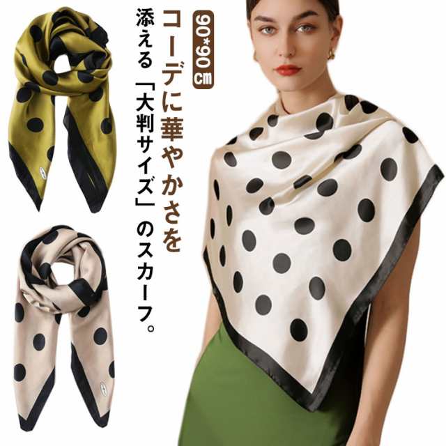 スカーフ シルクタッチ 90cm レディース ストール 大判スカーフ 巻き方 ドット柄 水玉柄 一重巻き ネクタイ結び 三角ドレープ巻き 春 夏 誕生日プレゼント 記念日ギフト 母の日 敬老の日ギフト 還暦 贈り物 全3色
