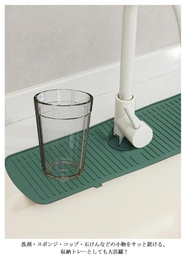 | 水はね防止&速乾!蛇口周りを清潔にキープ 水しぶきが飛び散るのを防ぎ、洗面台やキッチンの周りを常に乾燥・清潔に保ちます。 洗剤・スポンジ・コップ・石けんなどの小物をサッと置ける、収納トレーとしても大活躍! 環境にやさしいシリコン素材を採用。柔軟性があり、どんな蛇口形状にもフィットしやすい! 水が自然に流れる設計で水たまり防止 傾斜のついたデザインで水がシンクへスムーズに流れるから、マットに水が溜まりません。 汚れてもサッと水洗いOK!シリコンだからカビや汚れにも強く、長く使えます。 サイズ・形状ともに家庭のあらゆる蛇口に対応可能。どんなインテリアにも馴染むミニマルデザイン。 | |