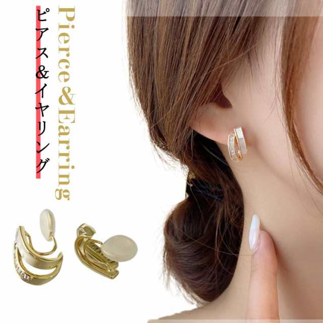 シェル ピアス イヤリング ビジュー ピアス イヤリング リング サークル ピアス見え ジルコニア レディース アクセサリー キラキラ 高見え 金属アレルギー対応 ノンホール ピアス 痛くない イヤリング 送料無料