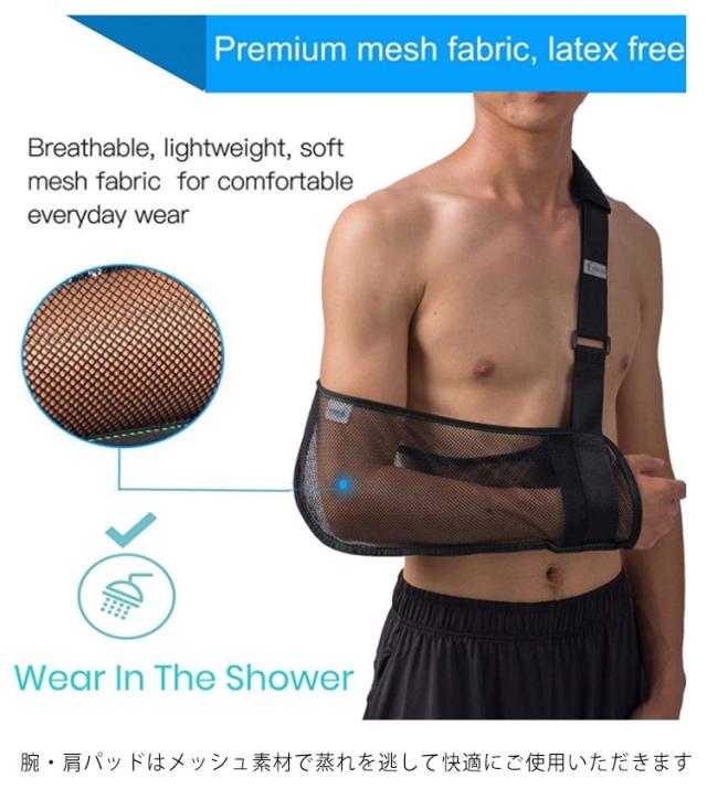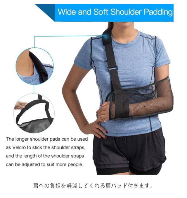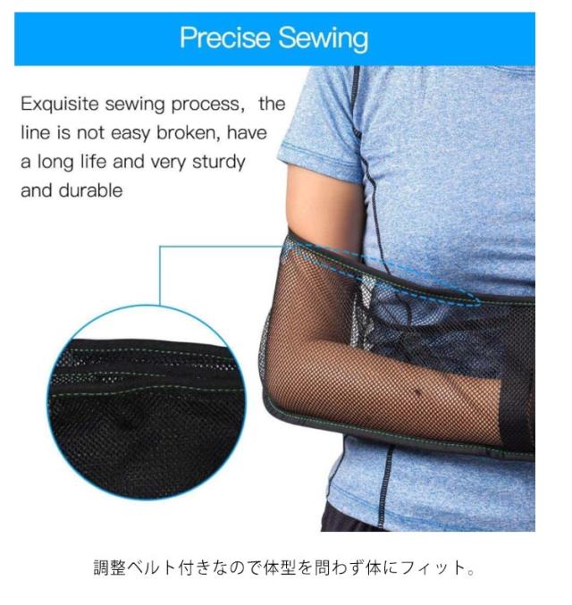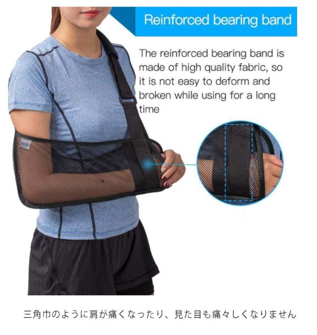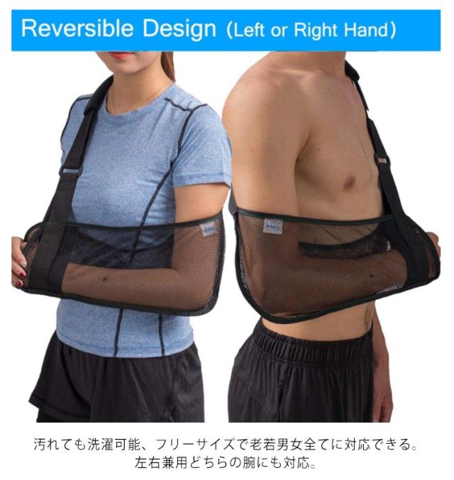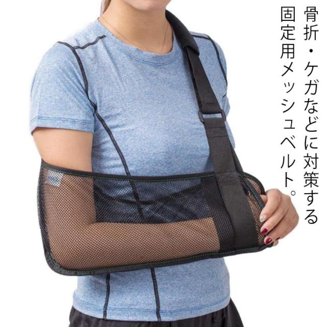 | 骨折・ケガなどに対策する固定用メッシュベルト。 腕・肩パッドはメッシュ素材で蒸れを逃して快適にご使用いただきます 三角巾のように肩が痛くなったり、見た目も痛々しくなりません 調整ベルト付きなので体型を問わず体にフィット。 肩への負担を軽減してくれる肩パッド付きます。 汚れても洗濯可能、フリーサイズで老若男女全てに対応できる。 左右兼用どちらの腕にも対応。 着脱やサイズ調整が片手で簡単に行えます。 野球、バスケ、ゴルフなどのスポーツから抱っこなどの腕の痛みにオススメ。 | |