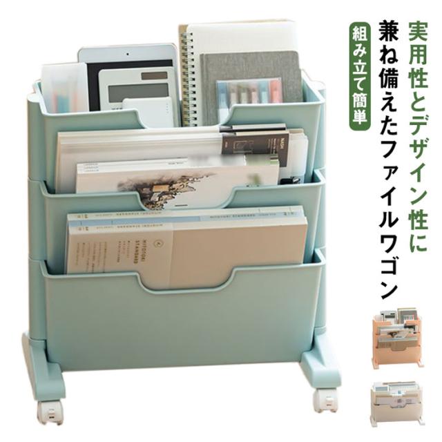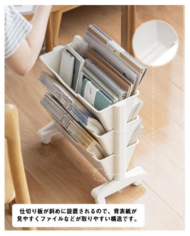 ファイルワゴン キャスター付 デスク下収納 大容量 2段 3段 斜め棚 仕切り 北欧 オフィス デスク下 机下 ファイル ドキュメント 収納ラック ブレーキ付き 本棚 取り出しやすい A4 書類収納 本収納 テレワーク おしゃれ 組み立て簡単 省スペース ギフト 送料無料