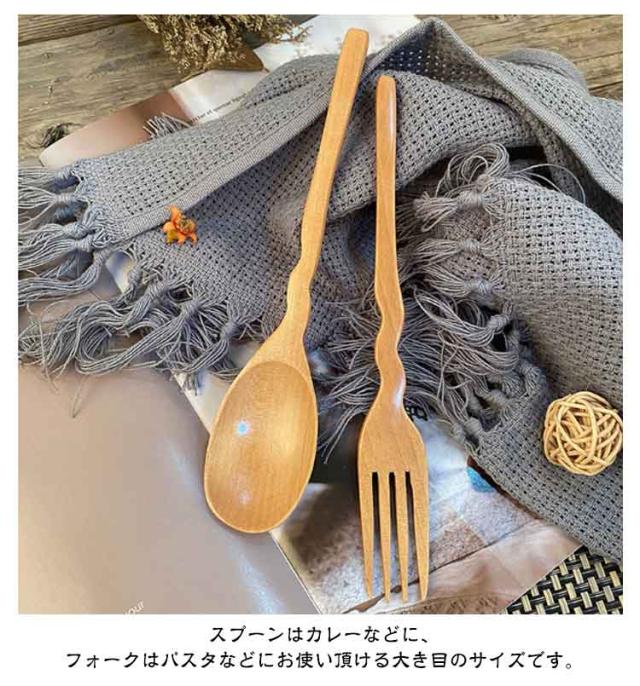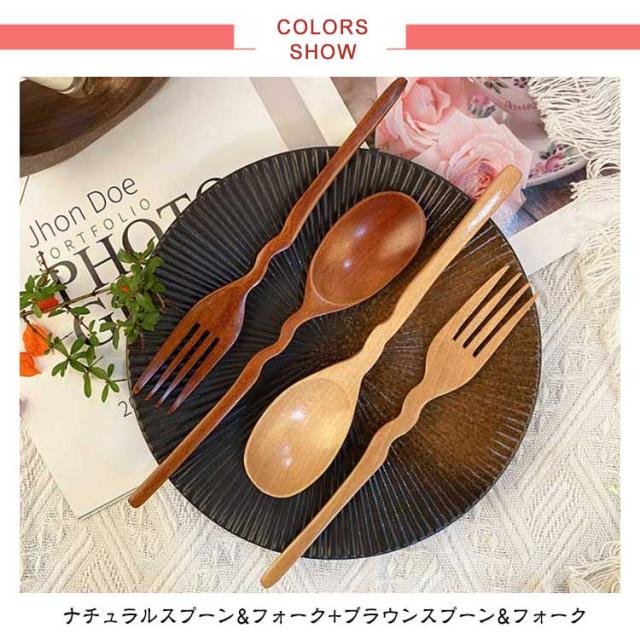 木製 波型 スプーン フォーク 4本セット 天然木製 デザートスプーン カレースプーン パスタ フォーク セット おしゃれ かわいい 天然木 ナチュラル 漆塗り 韓国 カトラリー ギフト 引っ越し祝い 結婚祝い 一人暮らし かわいい ギフト