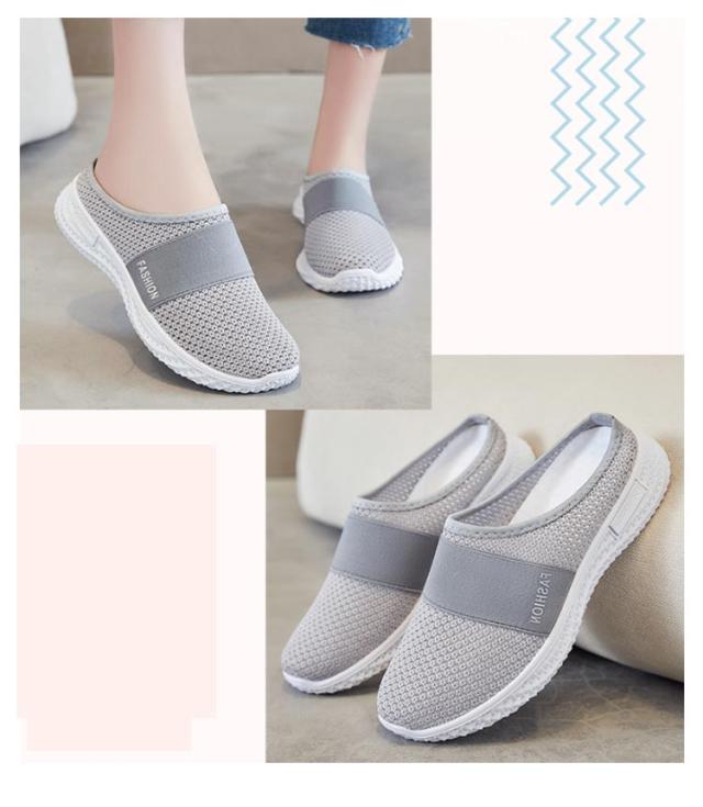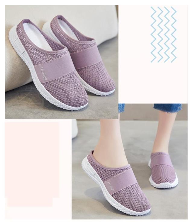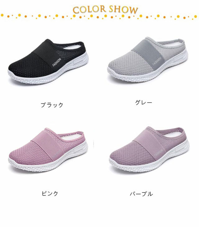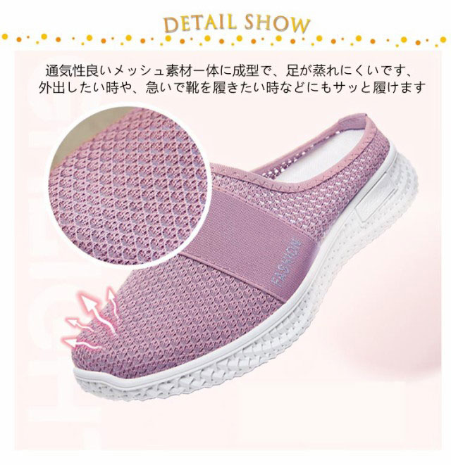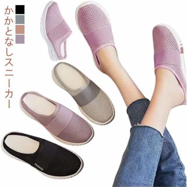 | かかとなしスニーカー 通気性良いメッシュ素材ー体に成型で、足が蒸れにくいです、外出したい時や、急いで靴を履きたい時などにもサッと履けます 着脱が簡単なので、忙しい朝や移動中でもスムーズに履き替えが可能です | |