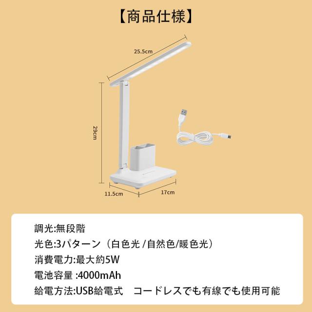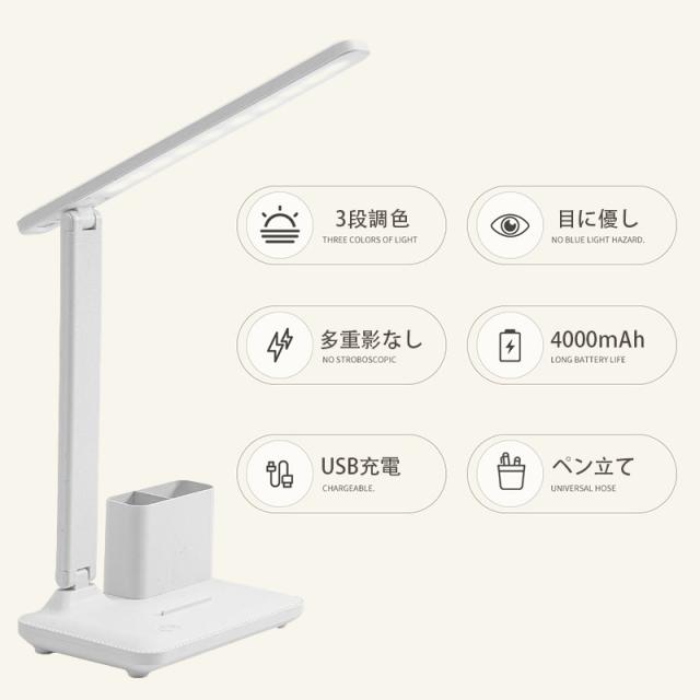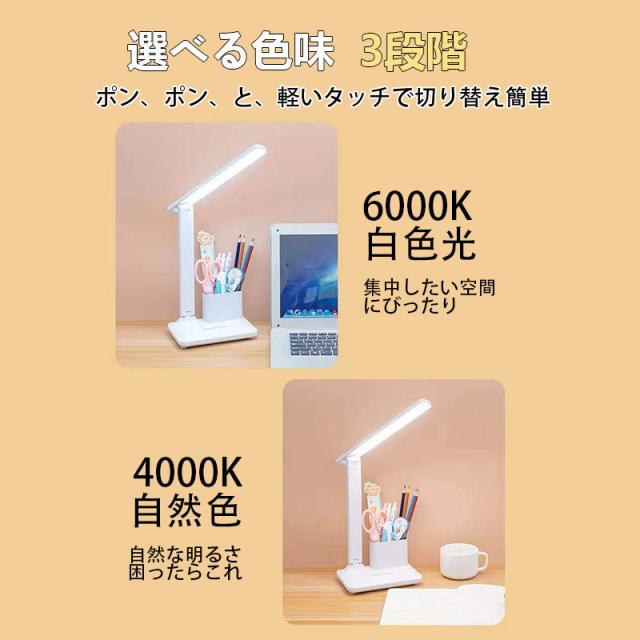 デスクライト 電気スタンド LED 子供 4000mAh 給電式 目に優しい USB 3段調色 無段階調光 タッチセンサー 読書灯 省エネ プレゼント