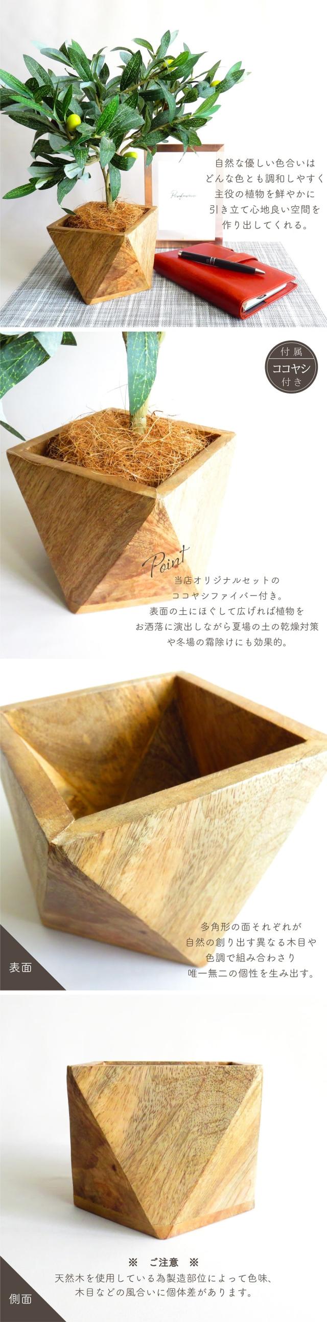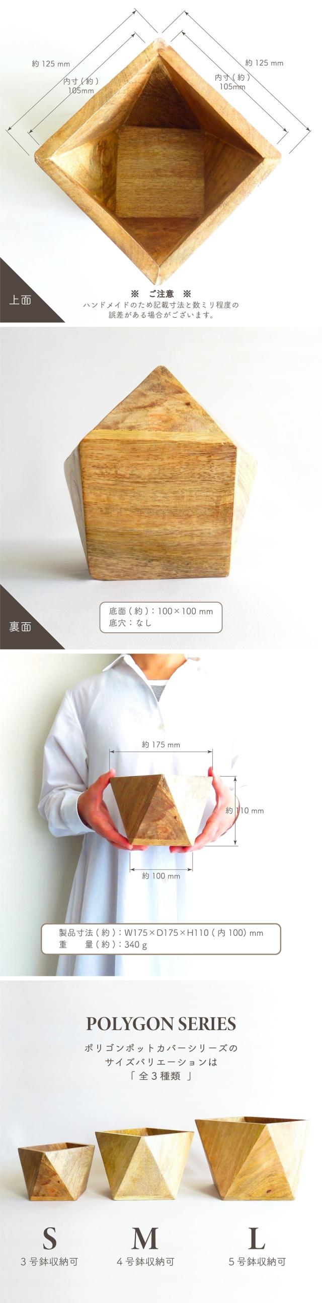 鉢カバー プランターカバー ポリゴンポットカバーS ココヤシ付きセット 3号鉢収納可 多角形 天然素材 マンゴーウッド 木製ボックス ガーデン ガーデニング インテリアグリーン ナチュラル モダン インテリア