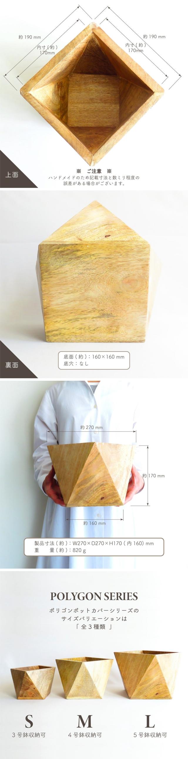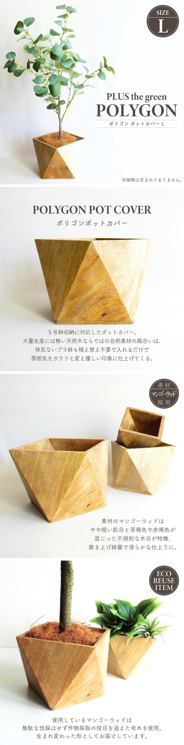 鉢カバー プランターカバー ポリゴンポットカバーL ココヤシ付きセット 5号鉢収納可 多角形 天然素材 マンゴーウッド 木製ボックス ガーデン ガーデニング インテリアグリーン ナチュラル モダン インテリア