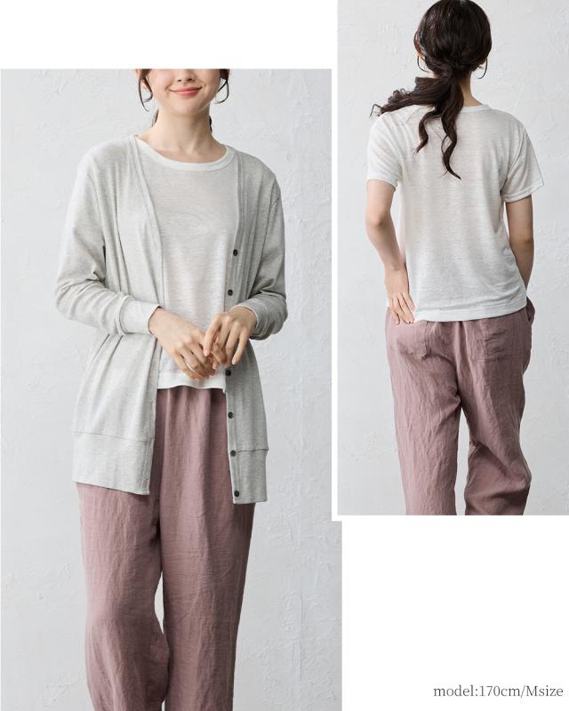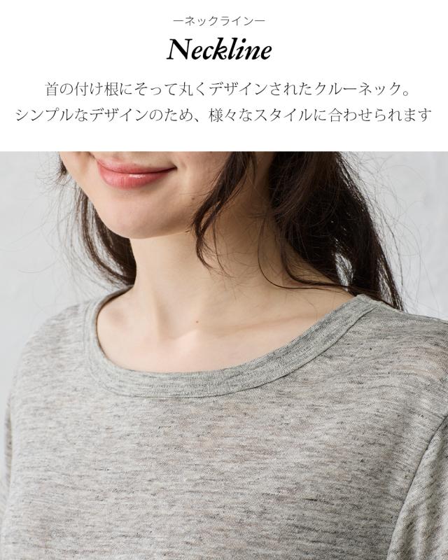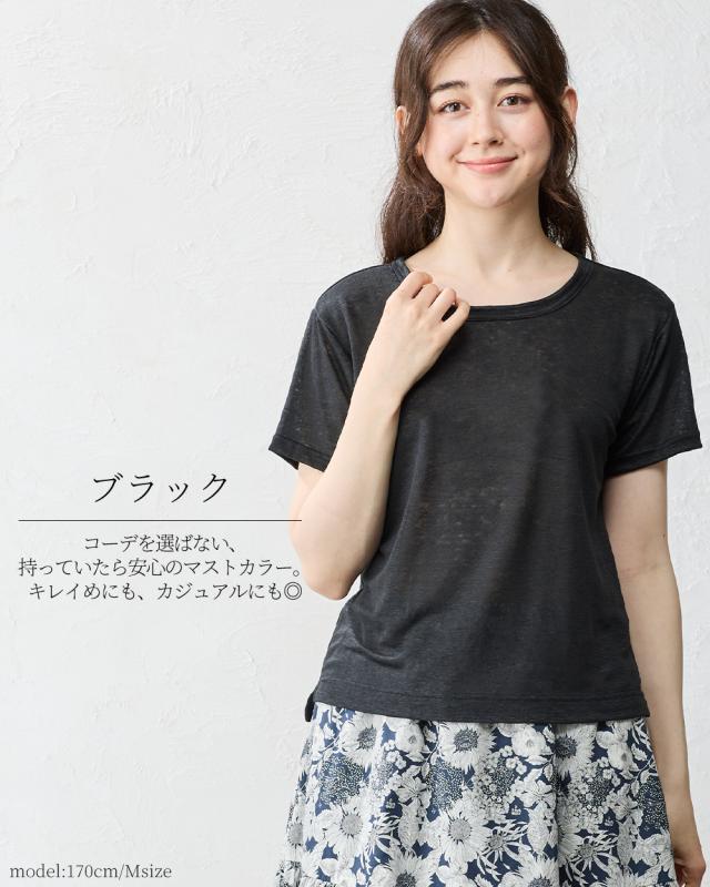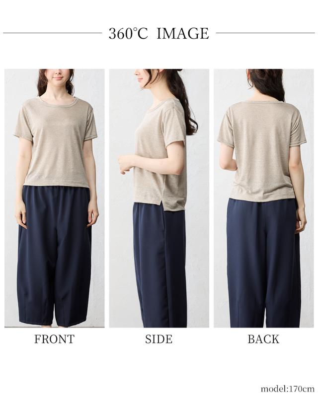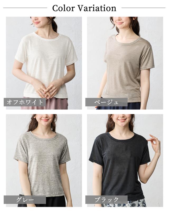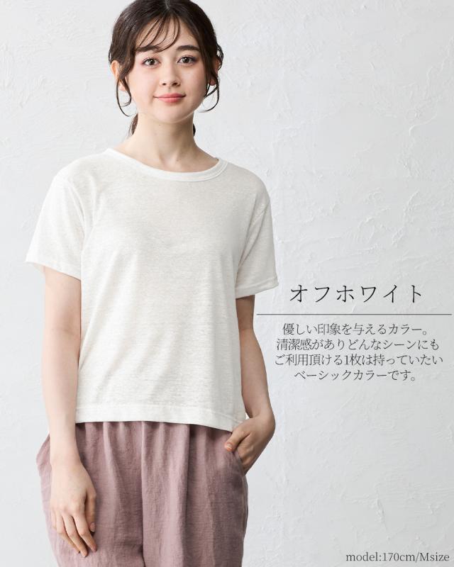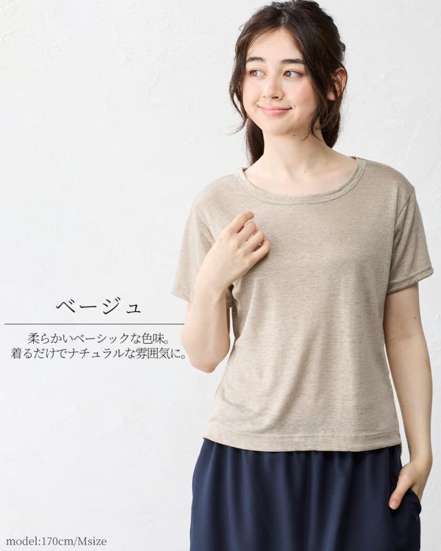 【日本製】いつも快適 蒸れない 麻 リネン ちくちくしない 脇スリット 半袖Tシャツ レディース トップス カットソー インナー クルーネック ラウンドネック 五分袖 無地 シンプル ベーシック 洗える ゆったり やすらぎリネン 40代 50代 60代 ファッション