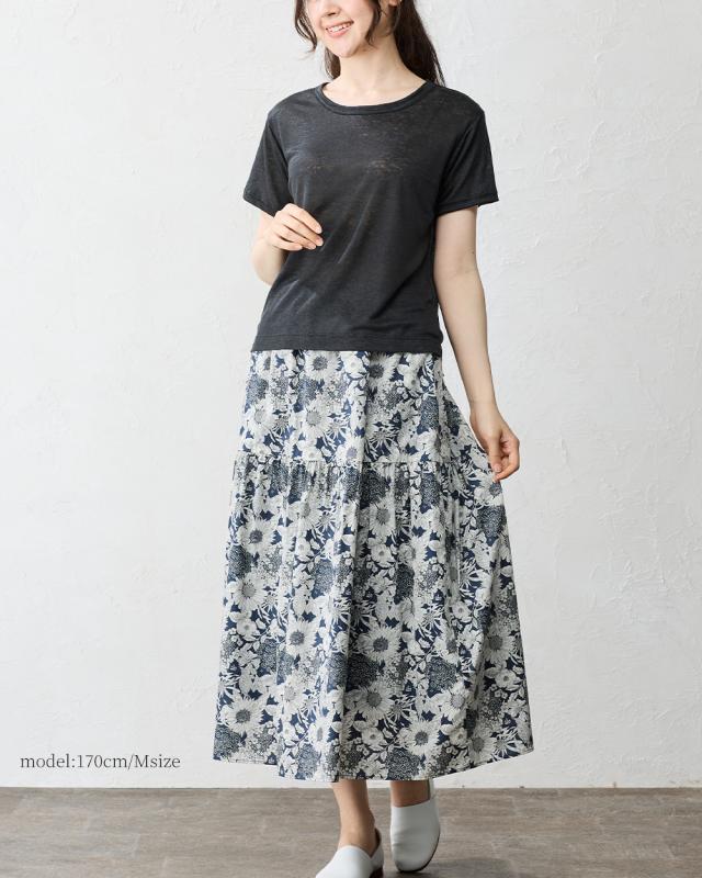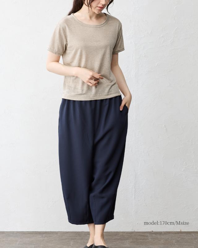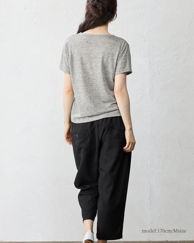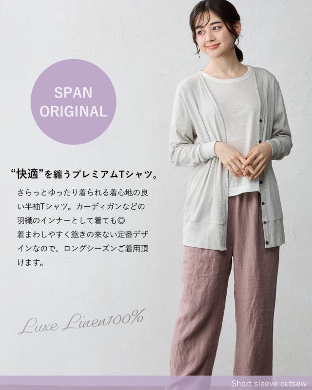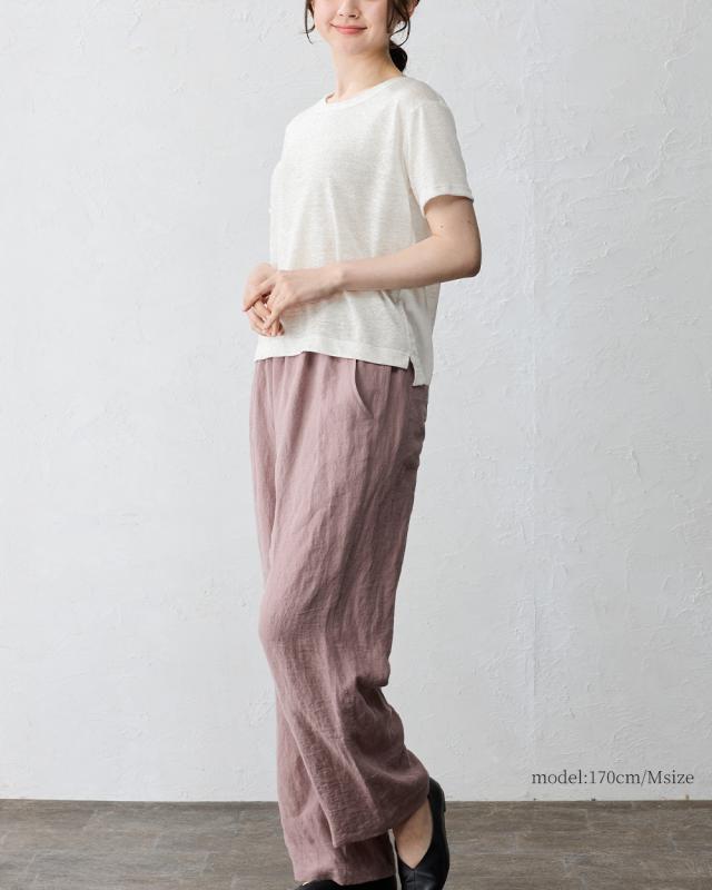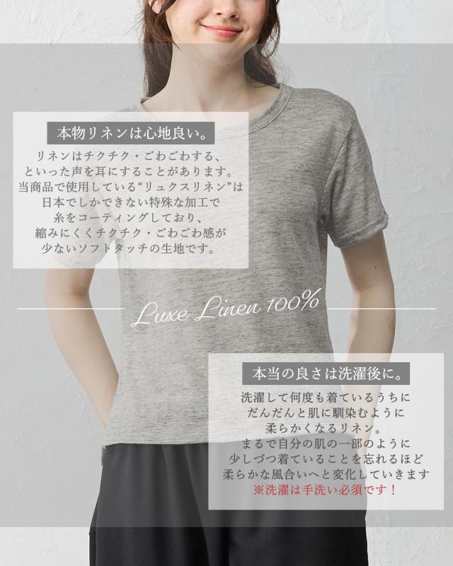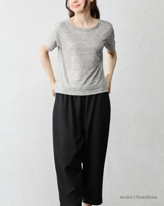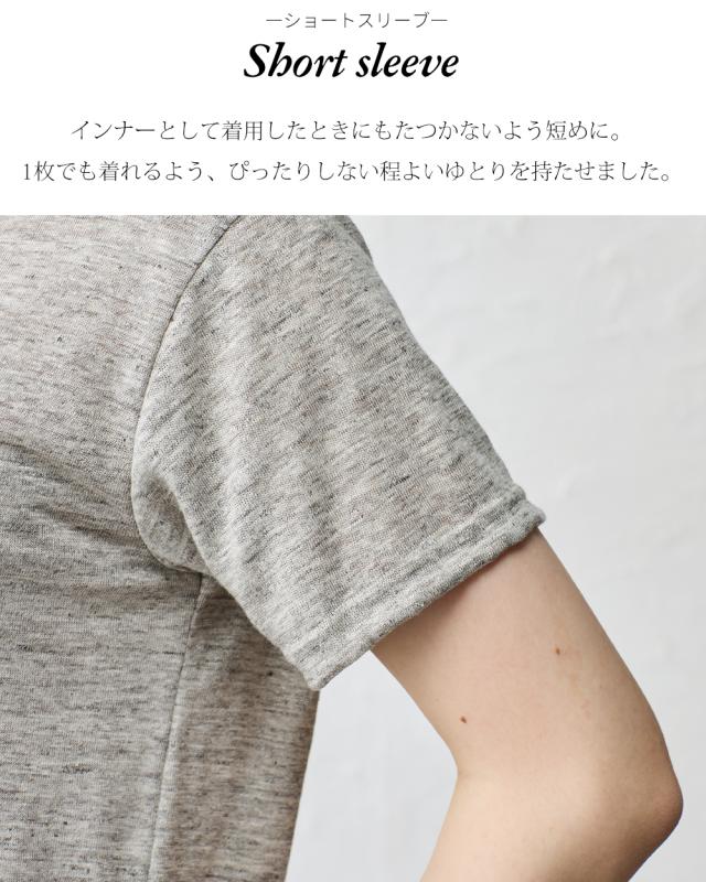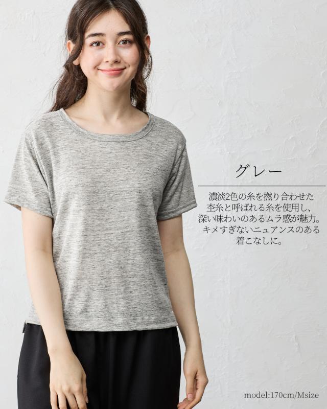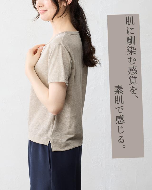 チクチクしない柔らかく風通しの良いリネン天竺を使用した半袖Tシャツ。