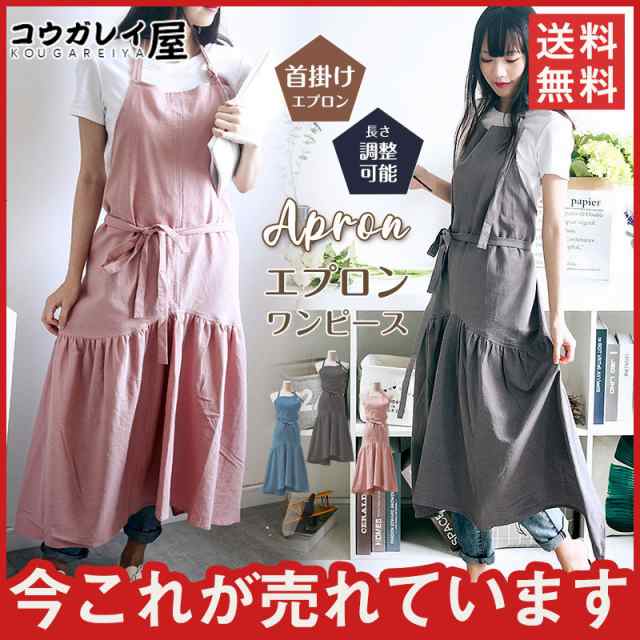 エプロン フリル 首掛け エプロンワンピース レディース 幼稚園や保育士 可愛い カフェ ロング ギフト 家事 掃除 園芸活動 履