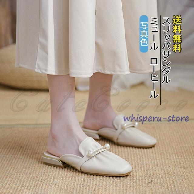 ミュール レディース パンプス スニーカーサンダル ローヒール カジュアルシューズ オフィス かかとなし 真珠 夏用 履きやすい 歩きやすい 美脚