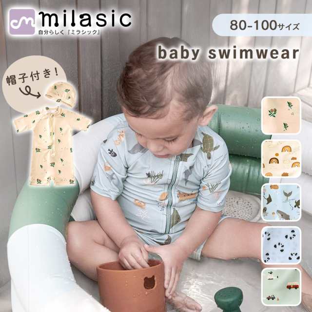ベビー水着 帽子付き 男の子 女の子 80cm 90cm 100cm ロンパース 赤ちゃん 水着 幼児 子供 プール 水泳 スイミング 伸縮性 かわいい おしゃれ 半袖 キャップ付き スイムキャップ ガールズ水着 ボーイズ水着 こども キャップ プールグッズ みずぎ MILASIC TN-SWHY