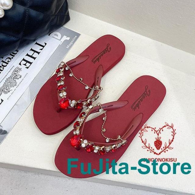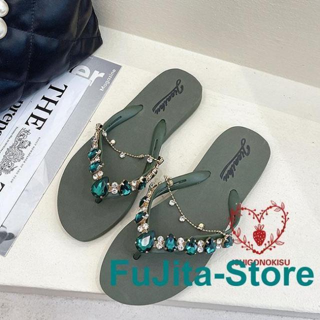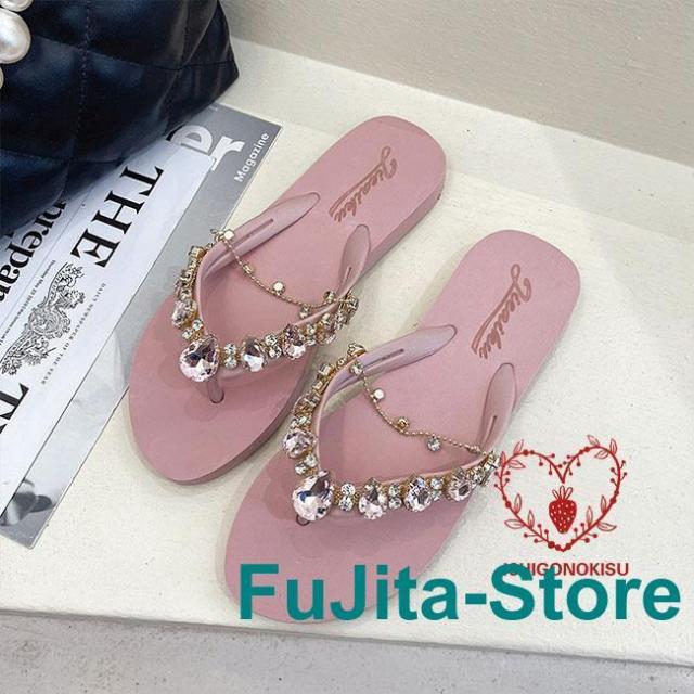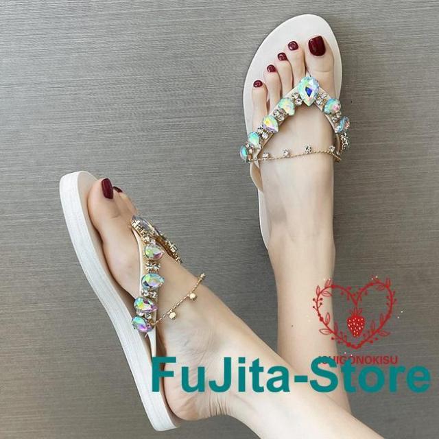 サンダル 夏 レディース トング スリッパ フラット底 ラインストーン お洒落 ビーサン スリッパサンダル トングサンダル 軽量 フラットサンダル