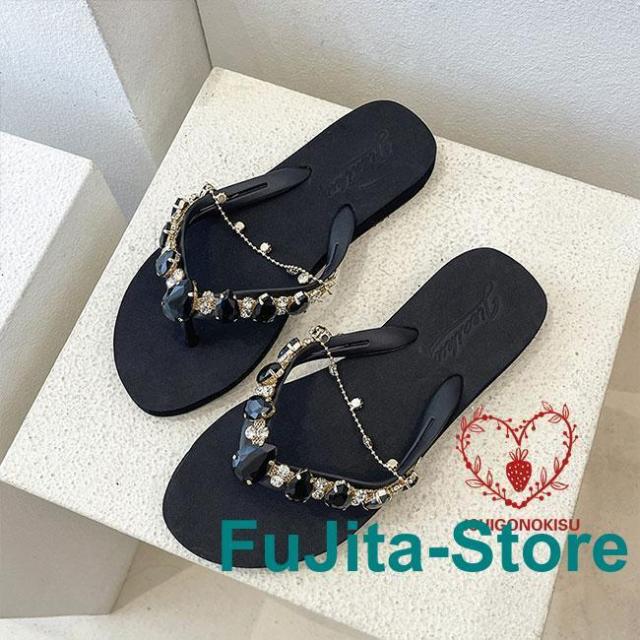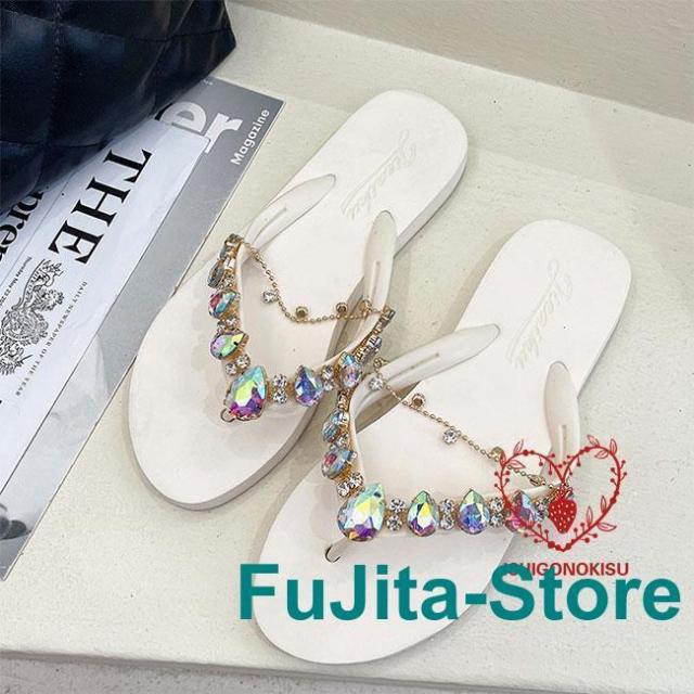 サンダル 夏 レディース トング スリッパ フラット底 ラインストーン お洒落 ビーサン スリッパサンダル トングサンダル 軽量 フラットサンダル ビーチサンダル キラキラ レトロ 美脚 カジュアルシューズ ホワイト ブラック ピンク