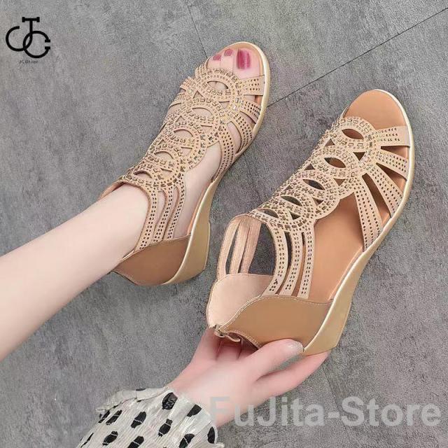 サンダル レディース ハイヒール ブーツサンダル 楽ちん グラディエーター 歩きやすい ローヒール 幅広 痛くない 夏 美脚 ウェッジソール キラキラサンダル