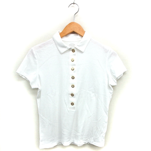 【中古】タルボット TALBOTS ステンカラー ポロシャツ ピマコットン 透け感 無地 半袖 M 白 ホワイト /NT8 レディース