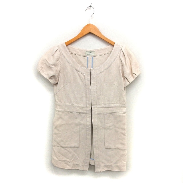 【中古】グレースコンチネンタル GRACE CONTINENTAL ノーカラー スプリングコート アウター ミディ丈 ホック 36 半袖