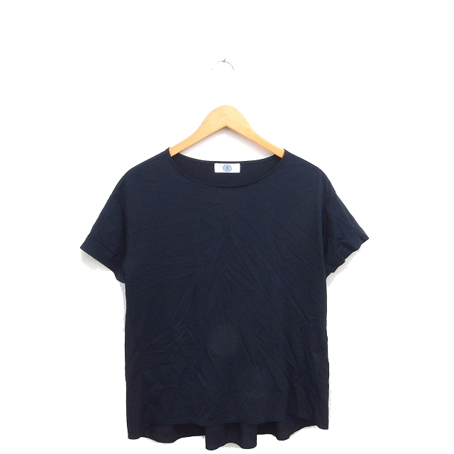 【中古】ジェイプレス J.PRESS カットソー ブラウス ボートネック 切替 ロールアップ プルオーバー 半袖 M ネイビー