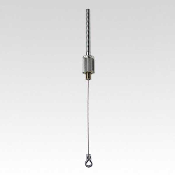 店舗や公共施設などの室内サイン吊りに最適なワイヤー+金具のセット品。パネルに穴をあけ取り付け可能です。