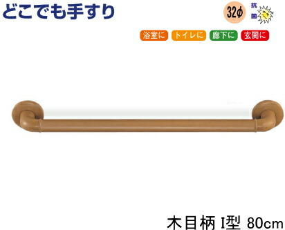 手すり どこでも手すり I型 80cm 木目柄【手すりセット】【浴室】【トイレ】