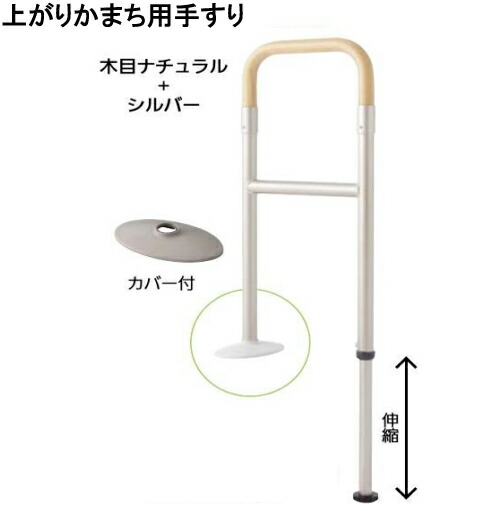 玄関上がり框用の補助手すり。土間部分はアジャスター付きで高さ調整が出来る手すりセット。化粧カバー付き