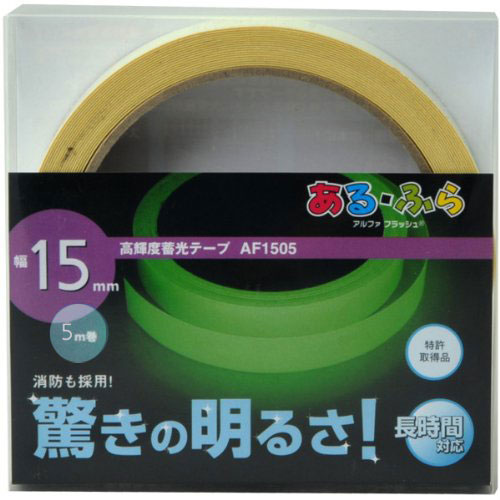 高輝度蓄光テープある・ふらα-FLASH009 幅15mm×5m 【ネコポス便対応】【節電対策】【停電対策】【テープタイプ】【毎晩の安全対策】