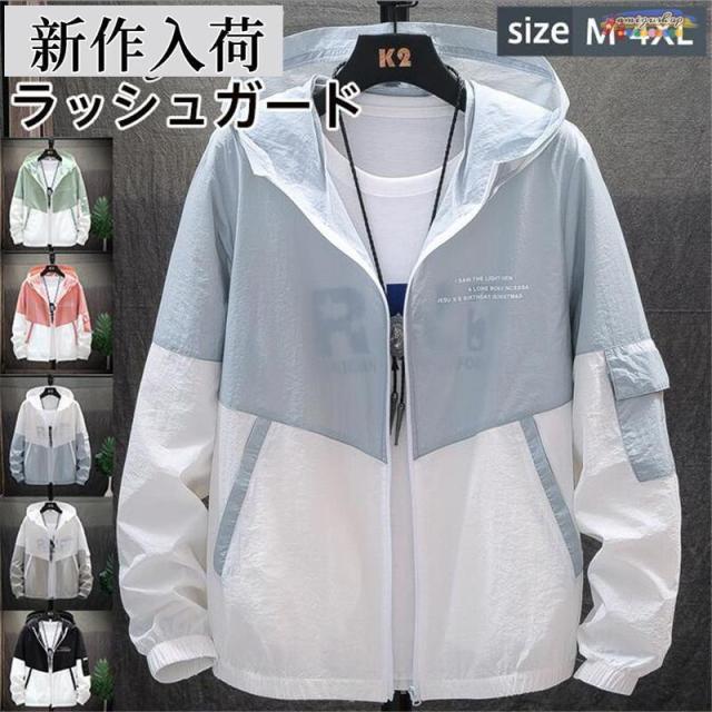 ラッシュガード メンズ パーカー 日焼け防止 接触冷感 UVカット 薄手 ジップアップ 長袖 フード付き 速乾 通気性 カジュアル お釣り おしゃれ