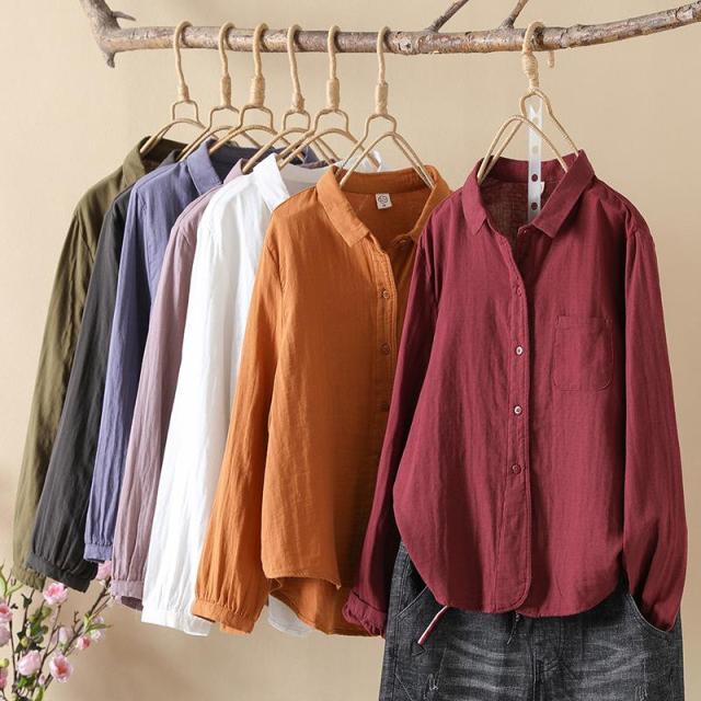 リネンシャツ リネン シャツ ブラウス レディース トップス リネン 麻 天然素材 麻 無地 長袖 シェルボタン パイピング 1ポケット ブラック黒