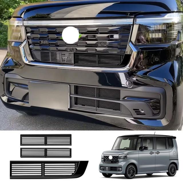新型 N-BOX 3代目 N-BOX カスタム フロントグリルガーニッシュ JF5 JF6 オシャレ ドレスアップ パーツ グリルアッパーカバー グリルロアカバー
