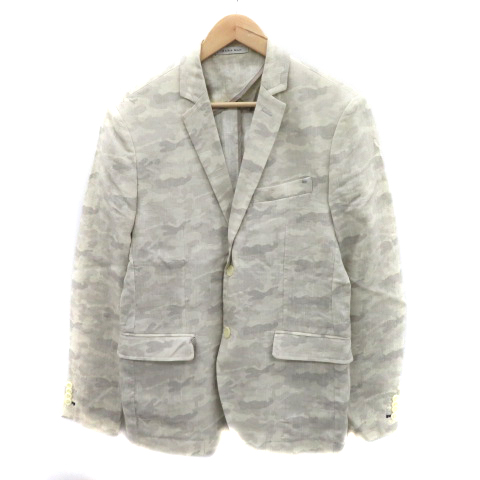 【中古】ザラマン テーラードジャケット ミドル丈 シングルボタン 迷彩柄 カモフラ柄 リネン ライトベージュ メンズ