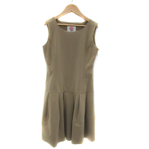 【中古】トワレ toilette ワンピース ひざ丈 ノースリーブ ラウンドネック 無地 3 M ベージュ /YS27 レディース
