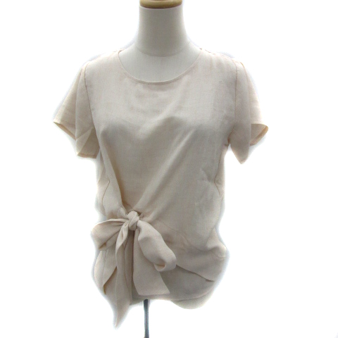 【中古】グローブ grove カットソー 半袖 ラウンドネック リボン M 薄ピンク /YS40 レディース