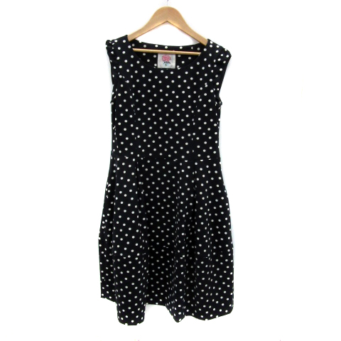 【中古】トワレ ワンピース ひざ丈 ノースリーブ ラウンドネック ドット柄 3 M 紺 ネイビー 白 ホワイト レディース
