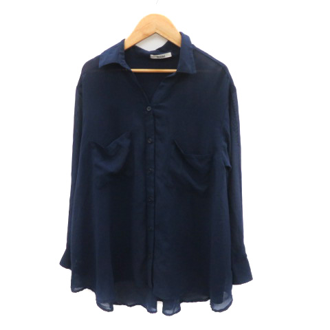 【中古】スナイデル SNIDEL シャツ ブラウス 長袖 スキッパーカラー シースルー F 紺 ネイビー /YK44 レディース