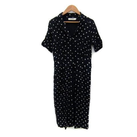 【中古】ナイスシングス オープンカラーシャツワンピース ミモレ丈 半袖 ドット柄 水玉柄 38 M 紺 レディース