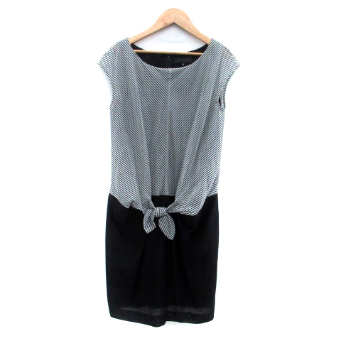 【中古】アンタイトル ワンピース 半袖 ダイアゴナルストライプ柄 ひざ丈 2 M 黒 ブラック オフホワイト