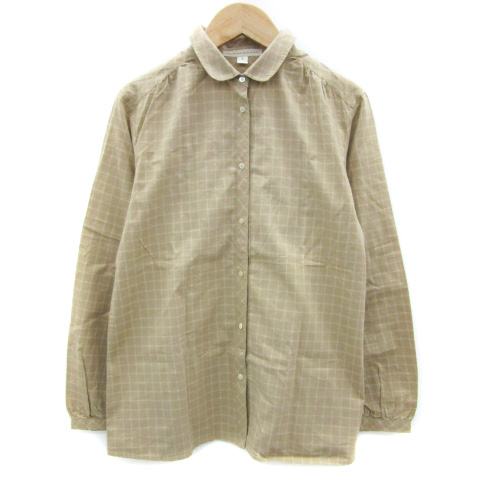 【中古】ヒューマンウーマン カジュアルシャツ 長袖 グラフチェック柄 ラウンドカラー 2 ライトブラウン レディース