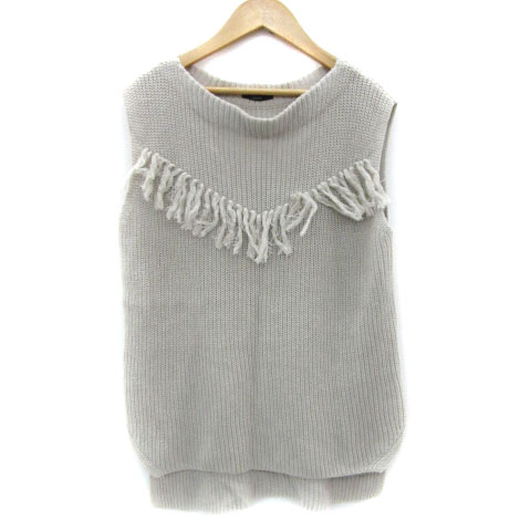 【中古】ロッソ アーバンリサーチ ニット カットソー ノースリーブ フリンジ リネン F ライトベージュ レディース