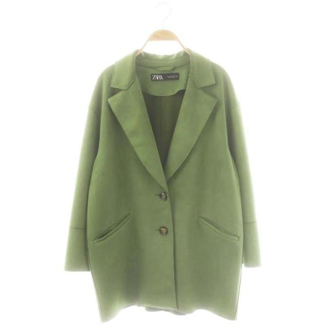 【中古】ザラ ZARA フェイクスエード ロングジャケット テーラード S 緑 グリーン /AT ■OS レディース