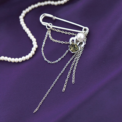シルバーカラー/ストーン付王冠とパールのじゃらブローチ/サン宝石