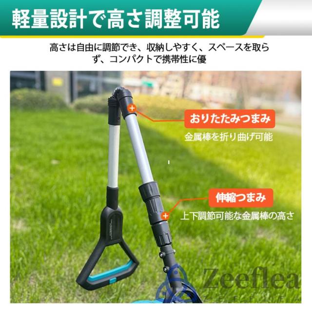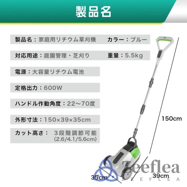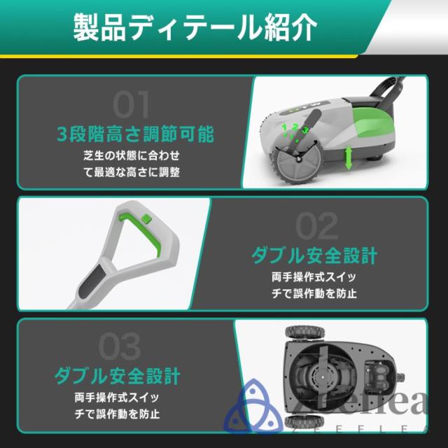 芝刈り機は、人間工学に基づいたデザインを採用しており、ハンドルの長さは身長や腕の長さに合わせて