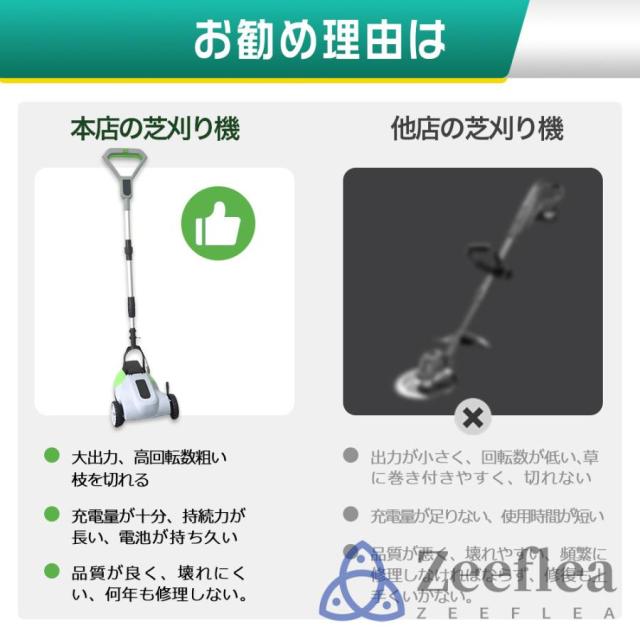 あなたに合う草刈り機をお探しですか?br> コードレス草刈り機は、あなたのニーズをすべて満たしてくれます。br> コードレス草刈機は、どこでも気軽に使えます!コードレスでコンセントの確認等の電源確保のストレスから解放!br> 電源がない場所でも使え、取り回しも楽なので作業効率もアップします。壁際や低い場所も手楽にカットできます。br> 家周りや軽作業等には十分な性能、女性や力が弱い方にも使用にも対応できる製品です。※
