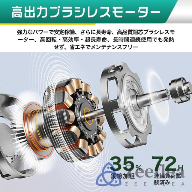 その他機能:ブラシレスモータ採用・静音モード・防水保護4級・バッテリ残量手元表示;