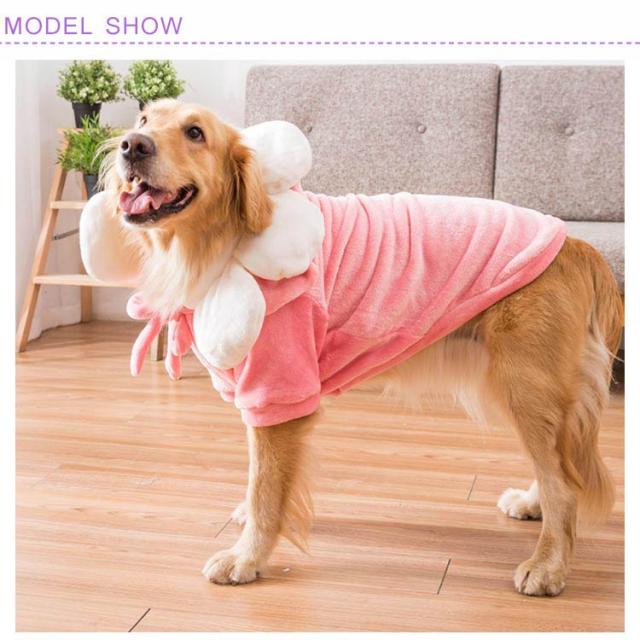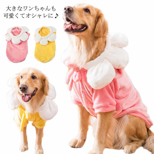 送料無料 大型犬 ウェア 犬 服 中型犬 ペットウェア 犬の洋服 ボア フリース 暖かい フード付き パーカー 記念写真 撮影 イベント 仮装 コスプレ 一輪の花が可愛い ソフト 保温 防寒 秋冬