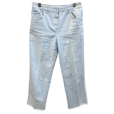 【中古】メゾンキツネ 美品 ロゴパッチ パンツ 切りっぱなし デニム 無地 薄手 38 約Mサイズ 水色 レディース