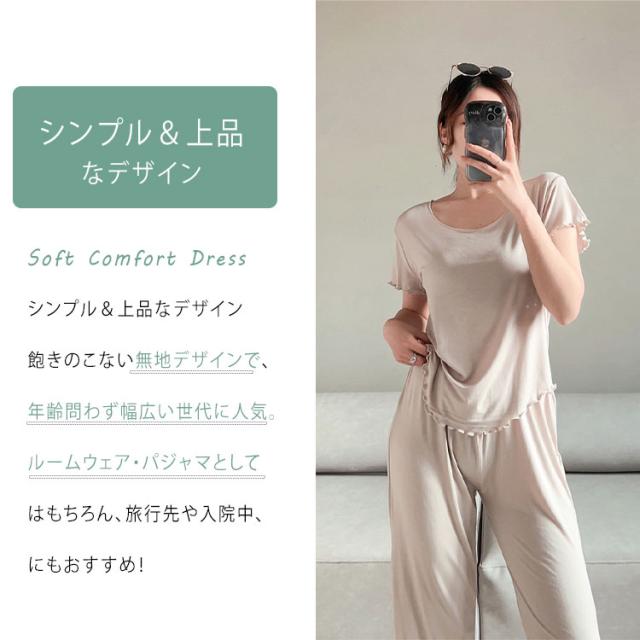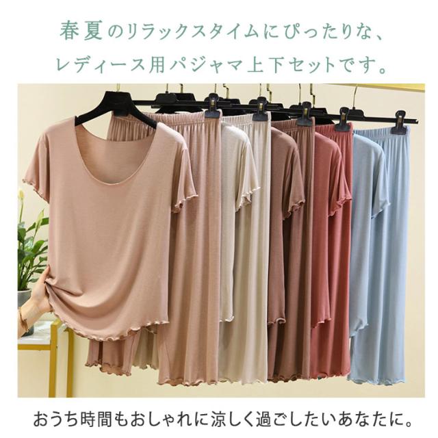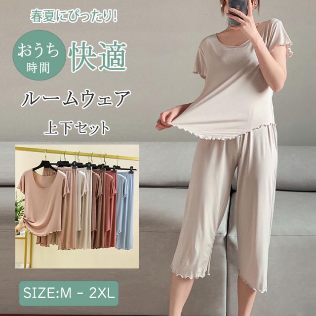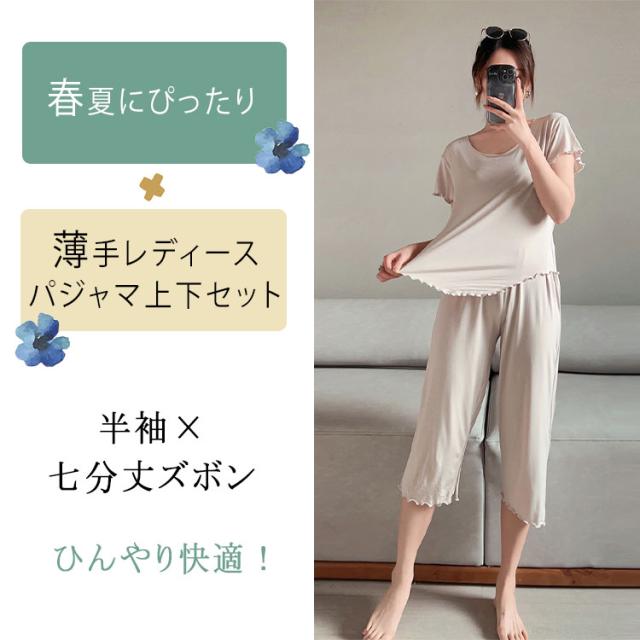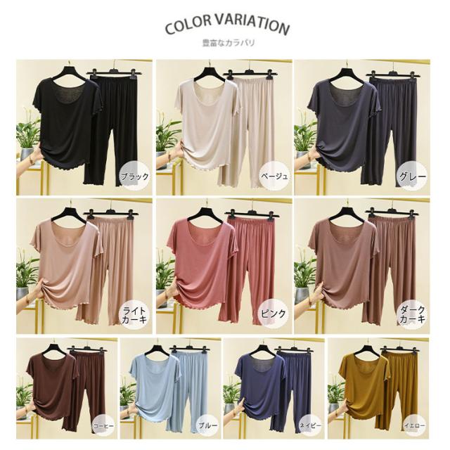 商品名 | 冷感 セットアップ レディース モダール素材 上下セット 半袖トップス 七分丈パンツ Uネック 接触冷感 吸汗速乾 涼感 ルームウェア ワンマイルウェア パジャマ ナイトウェア 軽量 ゆったり 柔らかい 薄手 春 夏 大きいサイズ 母の日 ギフト |